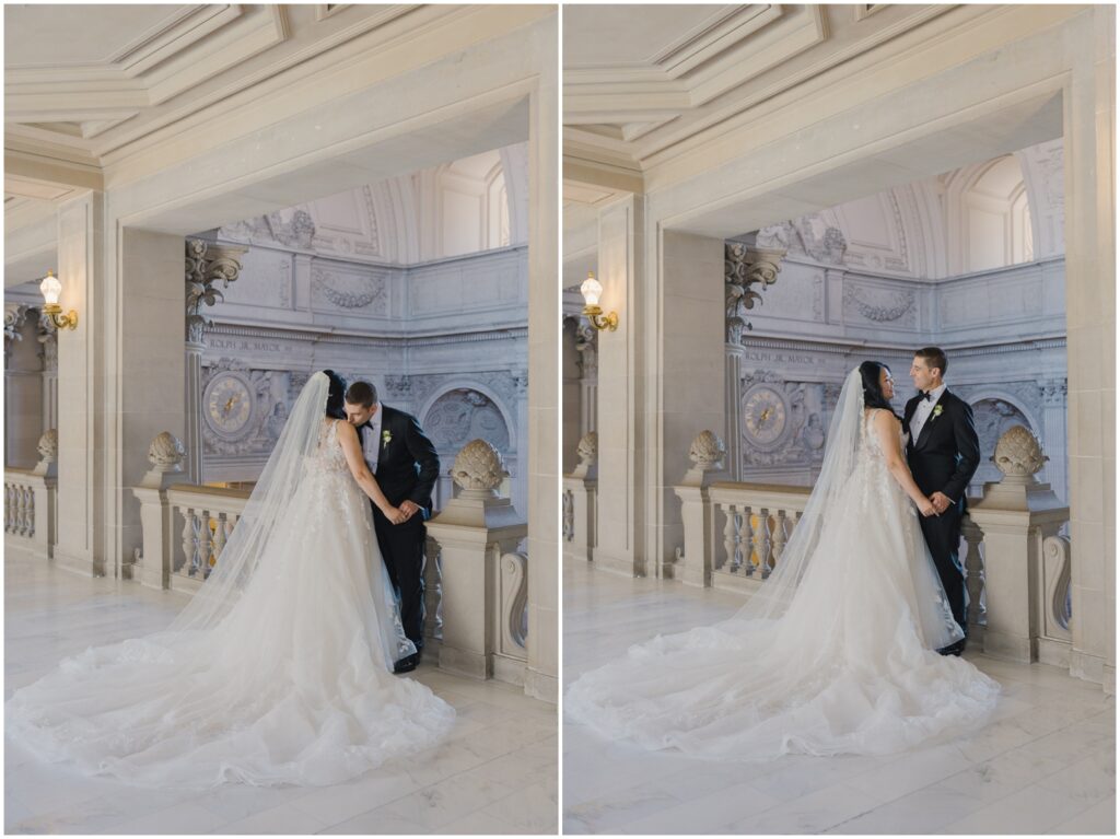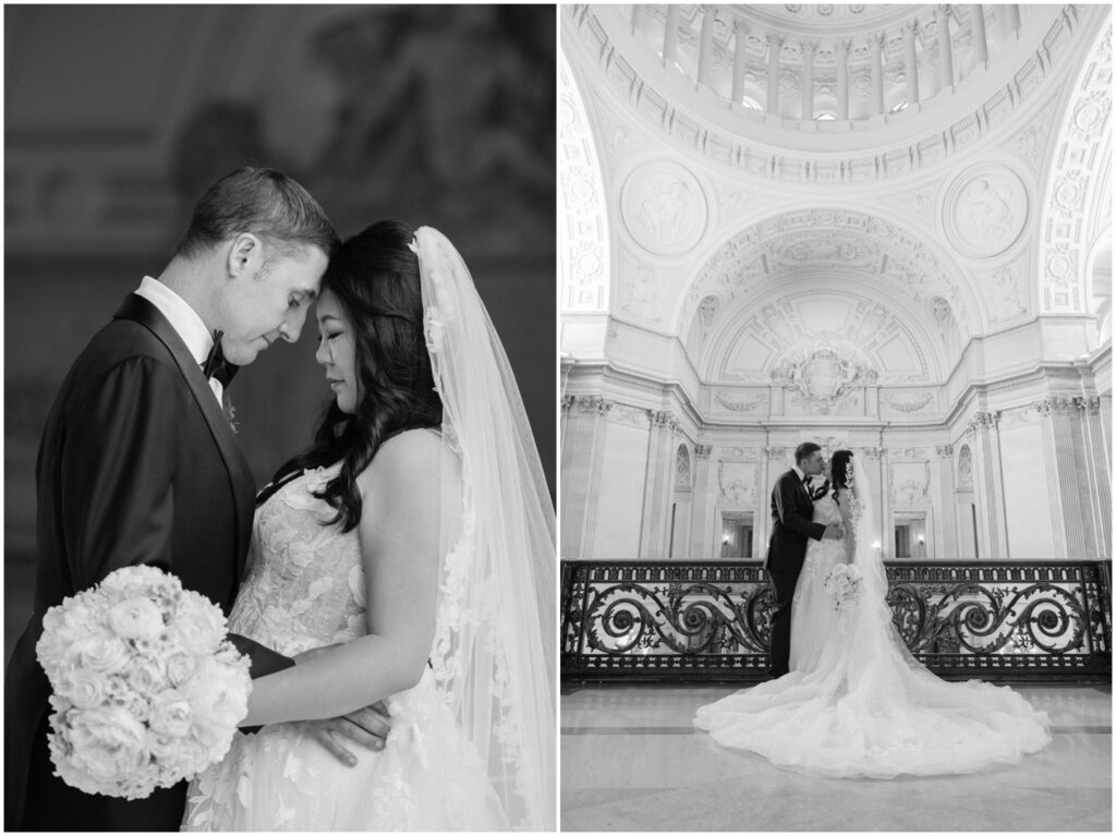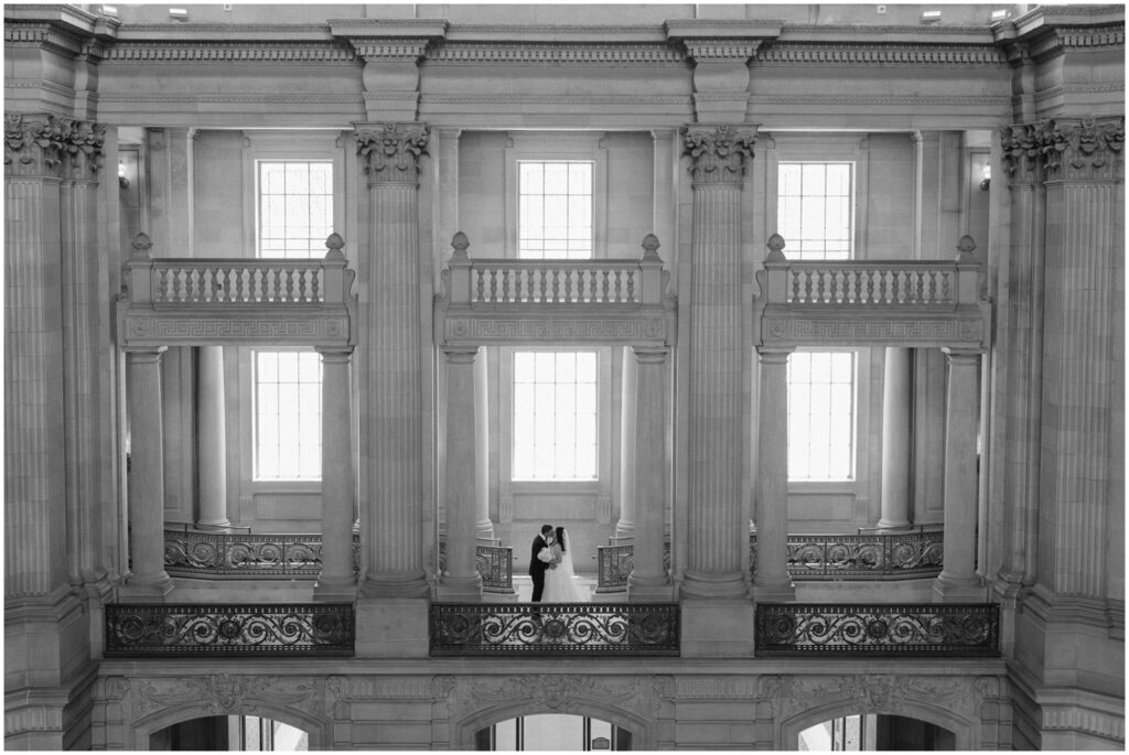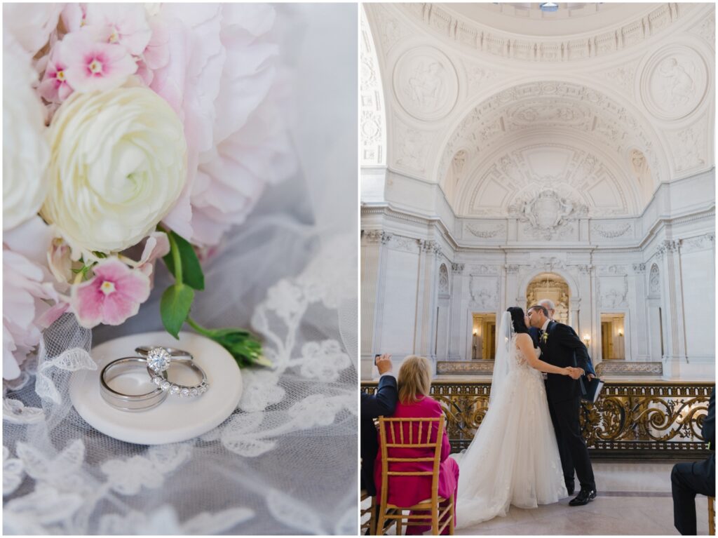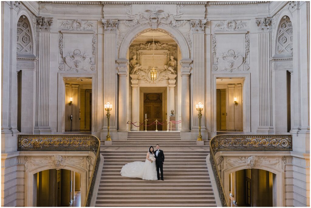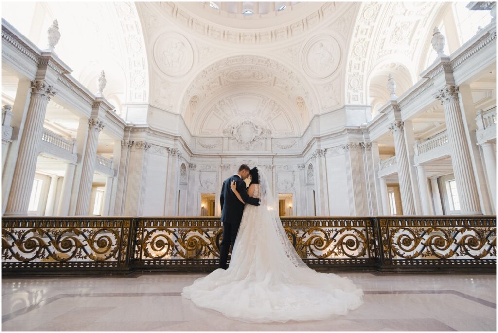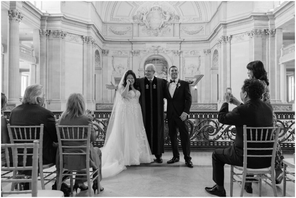 What began as a simple neighborly connection in their Bay Area apartment blossomed into a beautiful love story — fast forward seven year slater, C+B are now husband and wife! Their wedding day was an intimate celebration held on the Mayor’s Balcony at San Francisco City Hall. We began coverage with a touching ceremony officiated by C’s step-father. One of the most memorable moments was C gently wiping her tears after their first kiss. After the ceremony, we captured family portraits and their couple photos. With City Hall’s timeless backdrop, we took full advantage of its grand architecturef and soft natural light to9 frame their love story. It was truly an honor to witness and document such a special day. Congratulations, C+B! We wish you both a lifetime of love and joy!