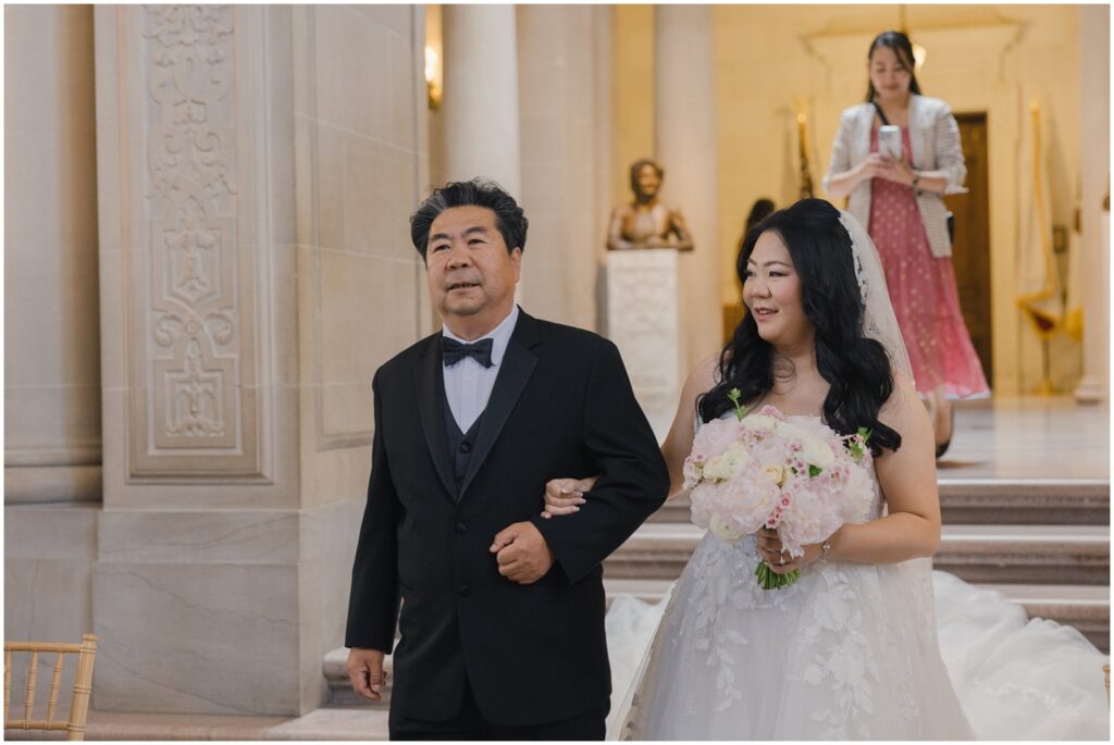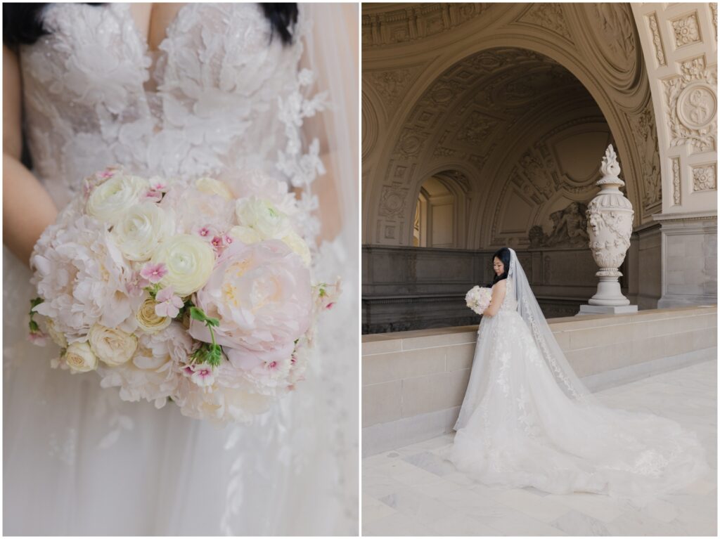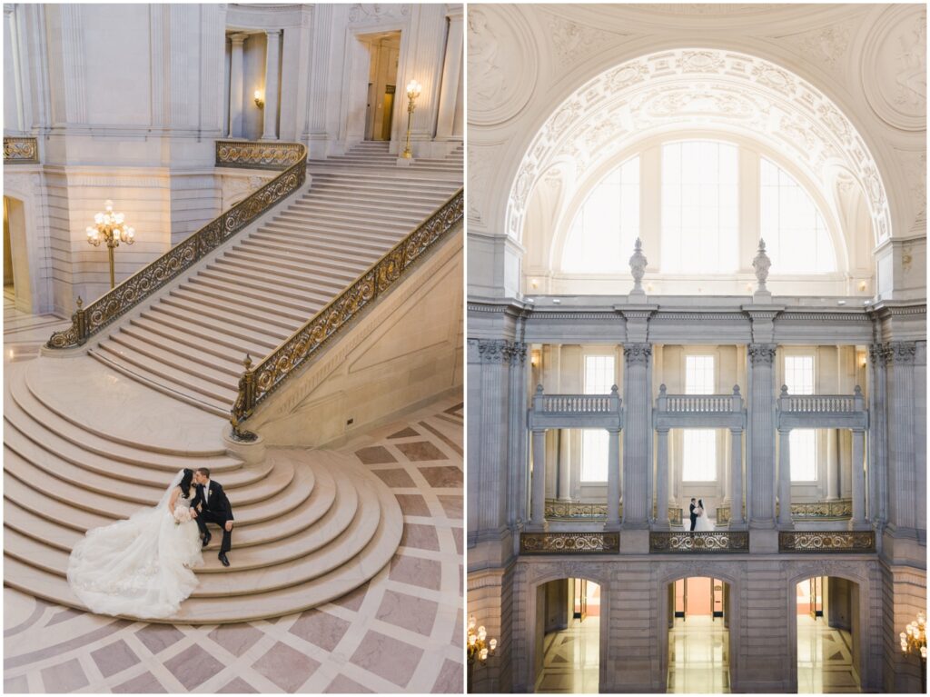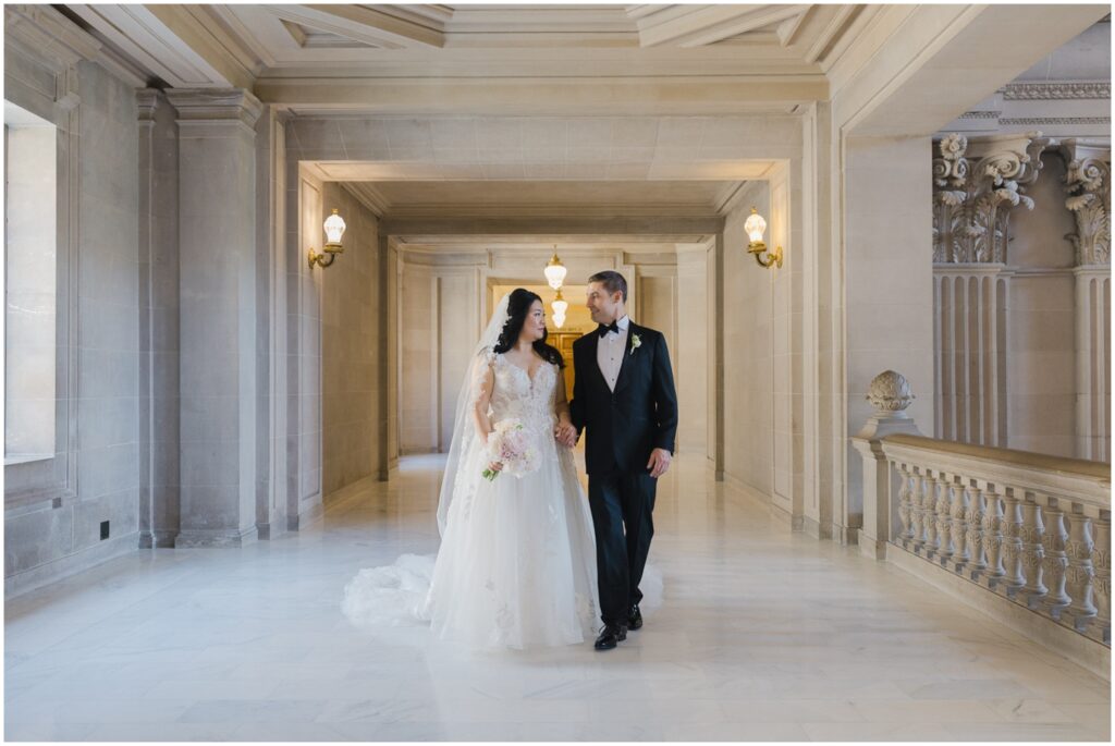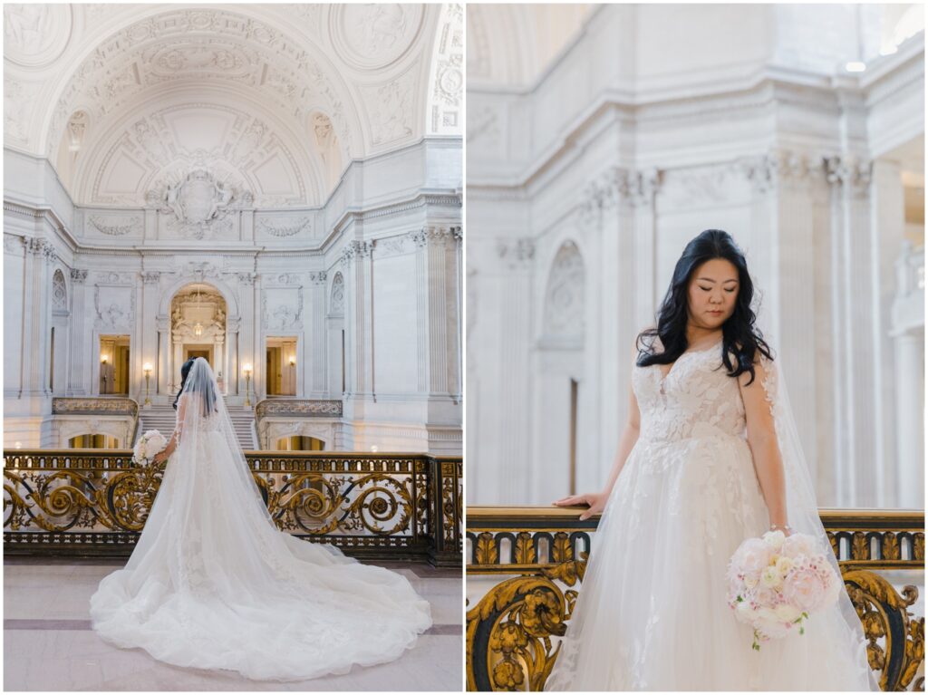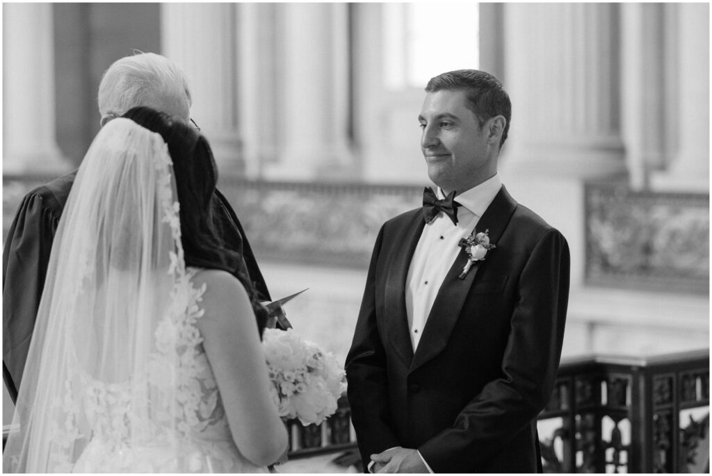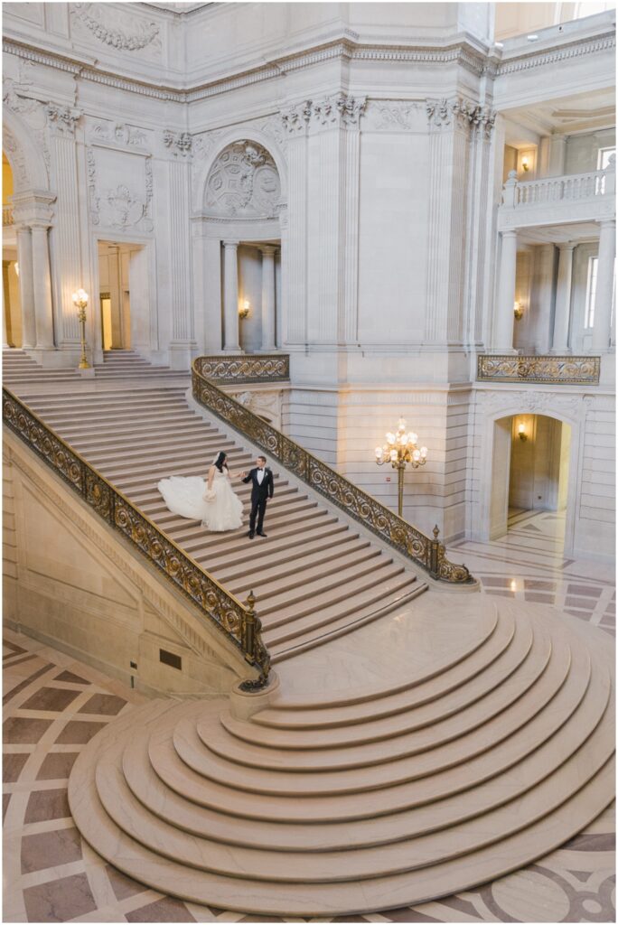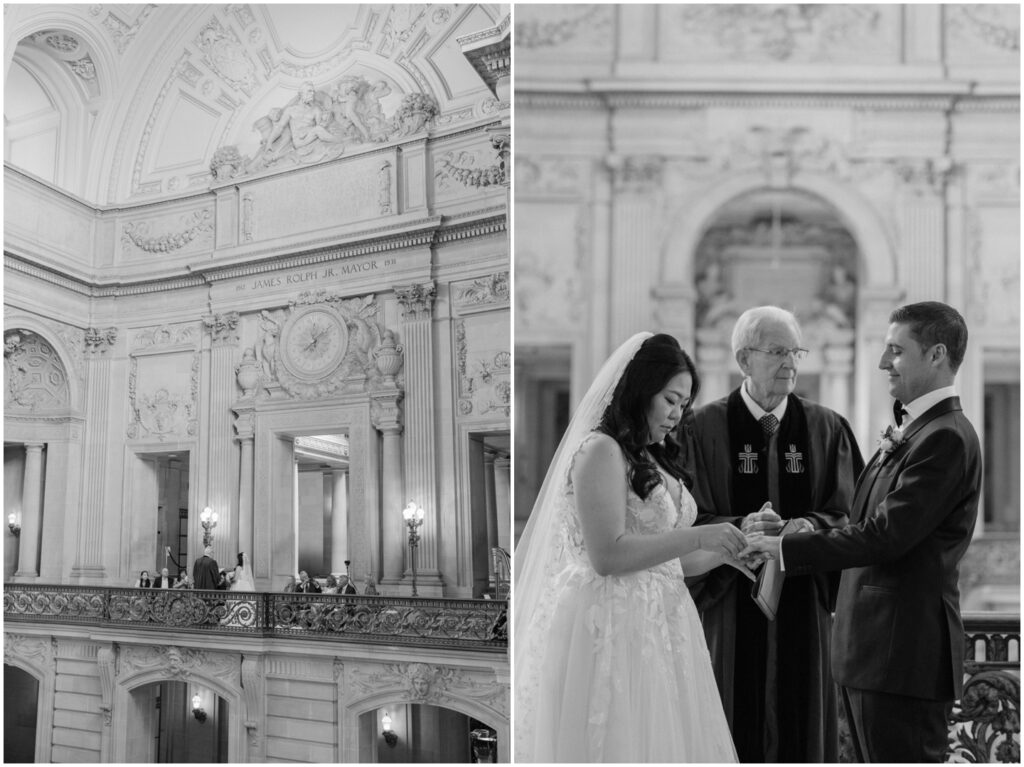 What began as a simple neighborly connection in their Bay Area apartment blossomed into a beautiful love story — fast forward seven year slater, C+B are now husband and wife! Their wedding day was an intimate celebration held on the Mayor’s Balcony at San Francisco City Hall. We began coverage with a touching ceremony officiated by C’s step-father. One of the most memorable moments was C gently wiping her tears after their first kiss. After the ceremony, we captured family portraits and their couple photos. With City Hall’s timeless backdrop, we took full advantage of its grand architecturef and soft natural light to9 frame their love story. It was truly an honor to witness and document such a special day. Congratulations, C+B! We wish you both a lifetime of love and joy!