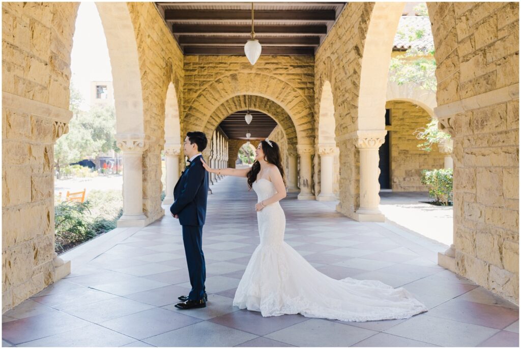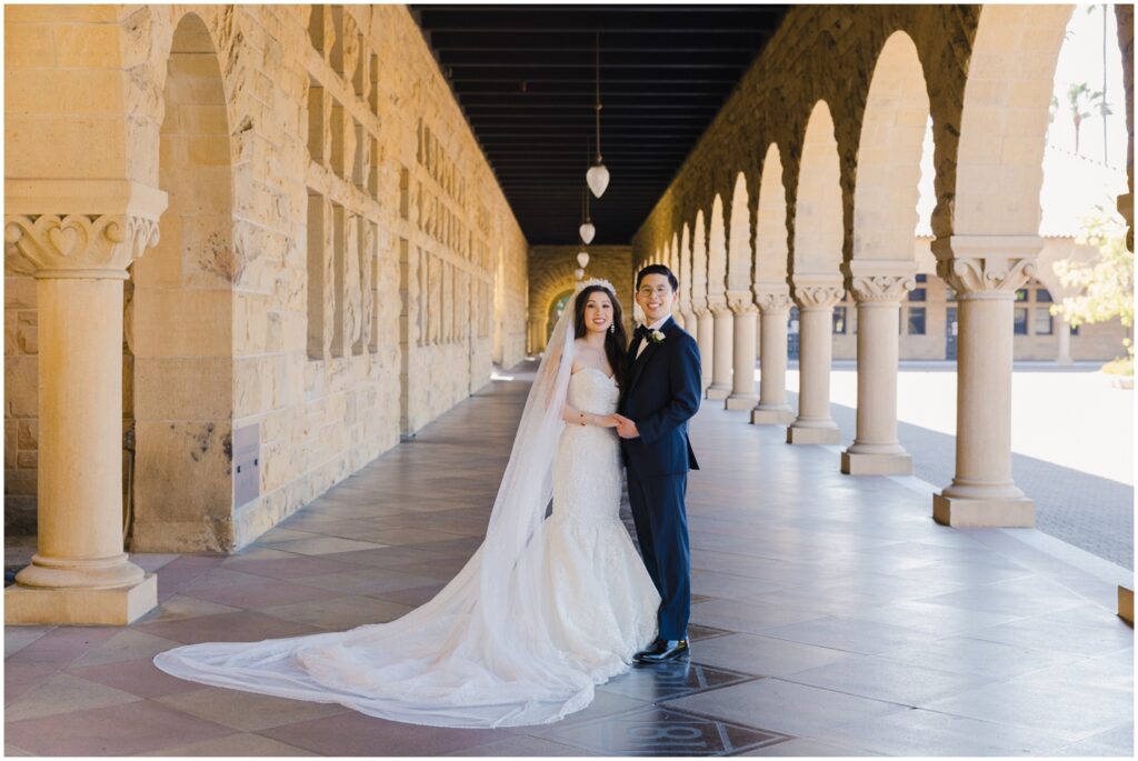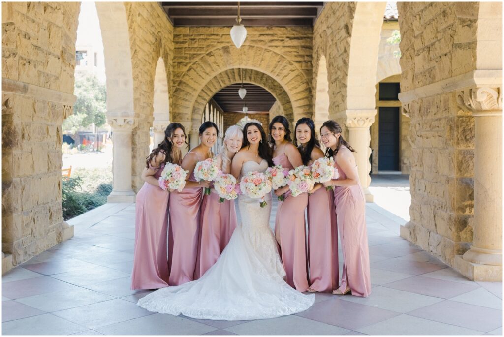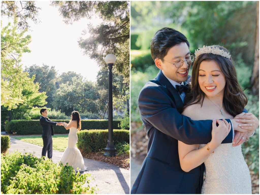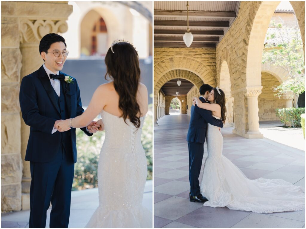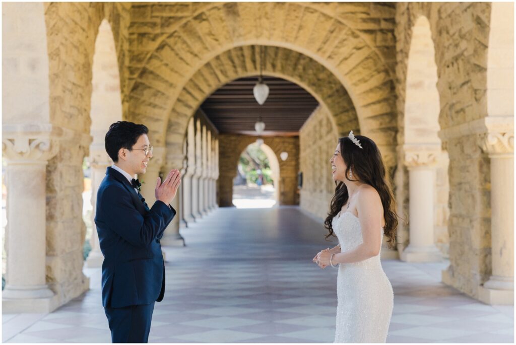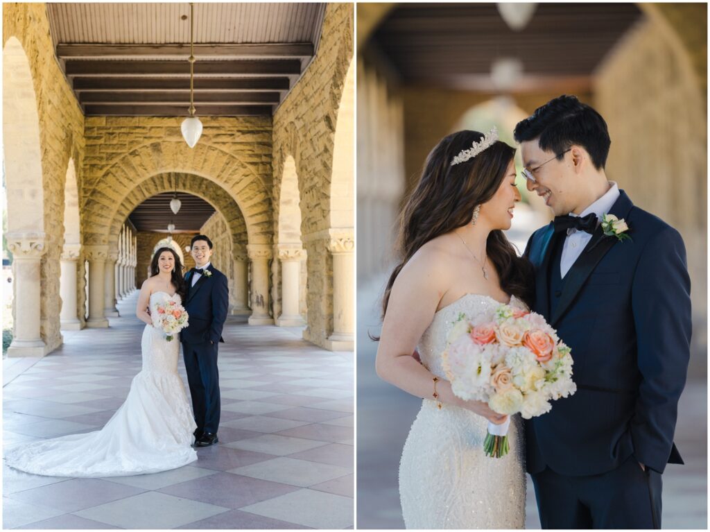 I’m thrilled to share a glimpse into M+J’s unforgettable wedding day—all set on the stunning Stanford University campus! Since M studied at Stanford, it was incredibly meaningful for her to tie the knot at a place so close to her heart. The couple chose The Stanford Faculty Club not only for their reception but also as their getting-ready and overnight spot, making the day seamless and stress-free for everyone. One special backdrop to photograph with was a gorgeous purple tree in bloom right in front of Stanford Memorial Church. Its vibrant colors made the perfect backdrop for portraits.