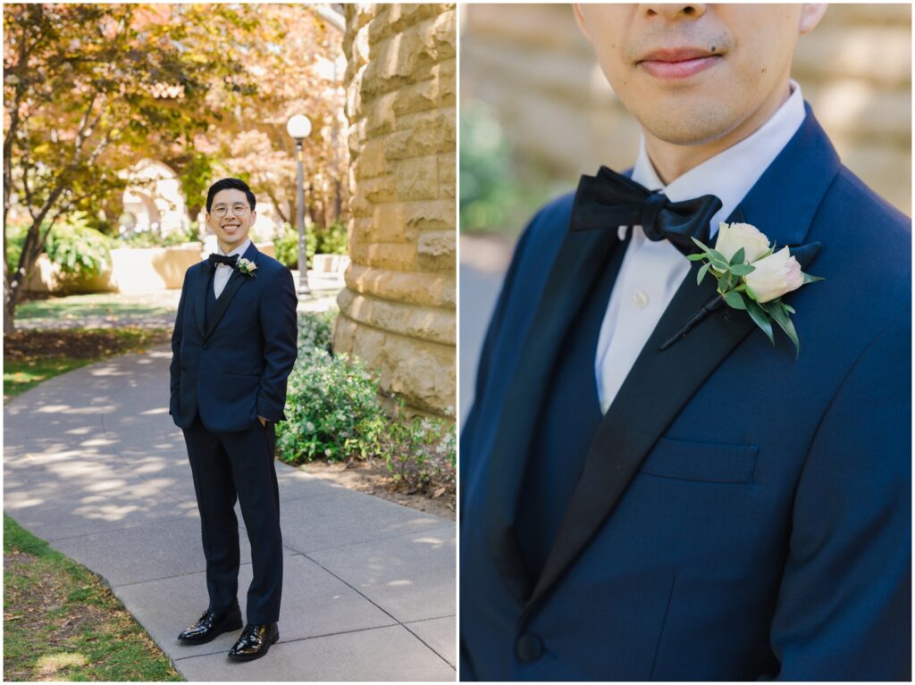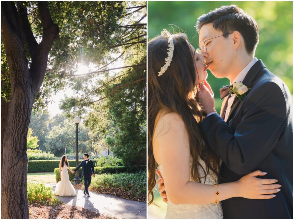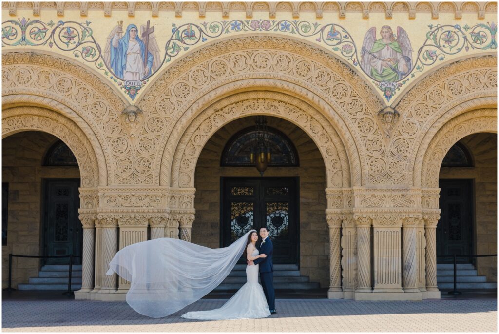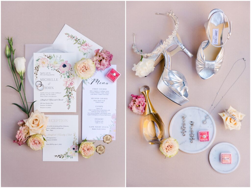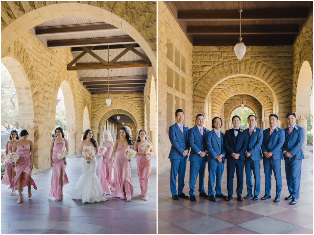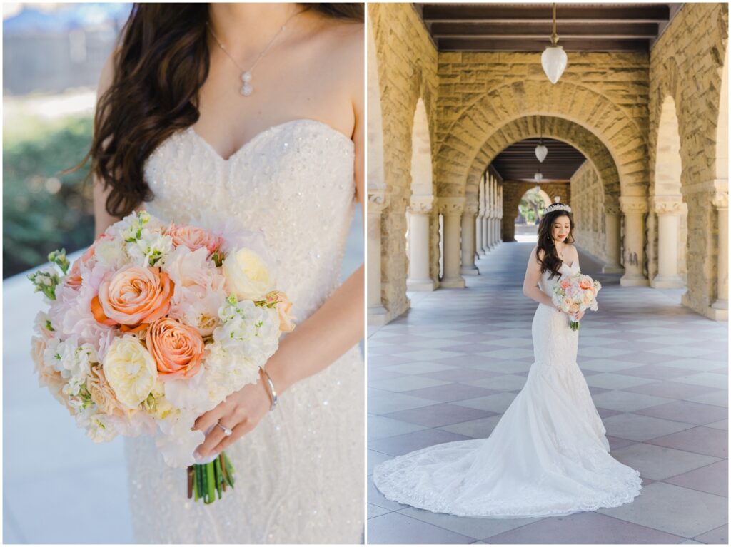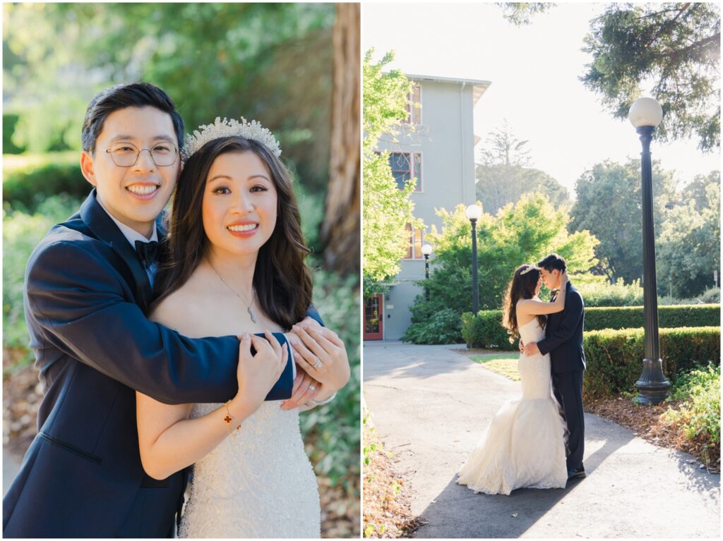 I’m thrilled to share a glimpse into M+J’s unforgettable wedding day—all set on the stunning Stanford University campus! Since M studied at Stanford, it was incredibly meaningful for her to tie the knot at a place so close to her heart. The couple chose The Stanford Faculty Club not only for their reception but also as their getting-ready and overnight spot, making the day seamless and stress-free for everyone. One special backdrop to photograph with was a gorgeous purple tree in bloom right in front of Stanford Memorial Church. Its vibrant colors made the perfect backdrop for portraits.