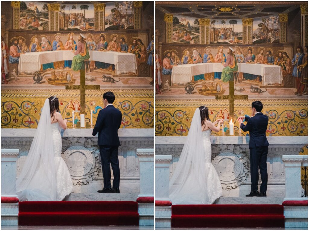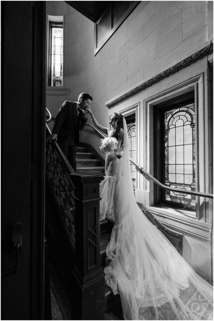 M+J said “I do” inside the church that is filled with stunning architecture and history, surrounded by their closest friends and family. After the ceremony, we even managed a big group photo from the choir loft—a fun and memorable way to celebrate the moment! The festivities continued at The Faculty Club with cocktails, light bites, and a reception full of heartfelt moments. We had an absolute blast documenting every bit of this beautiful celebration. Congratulations, M+J! It was an honor to capture your love story at such a meaningful and magical place!