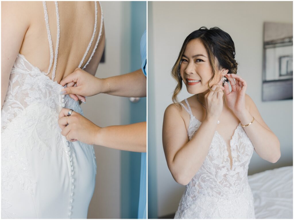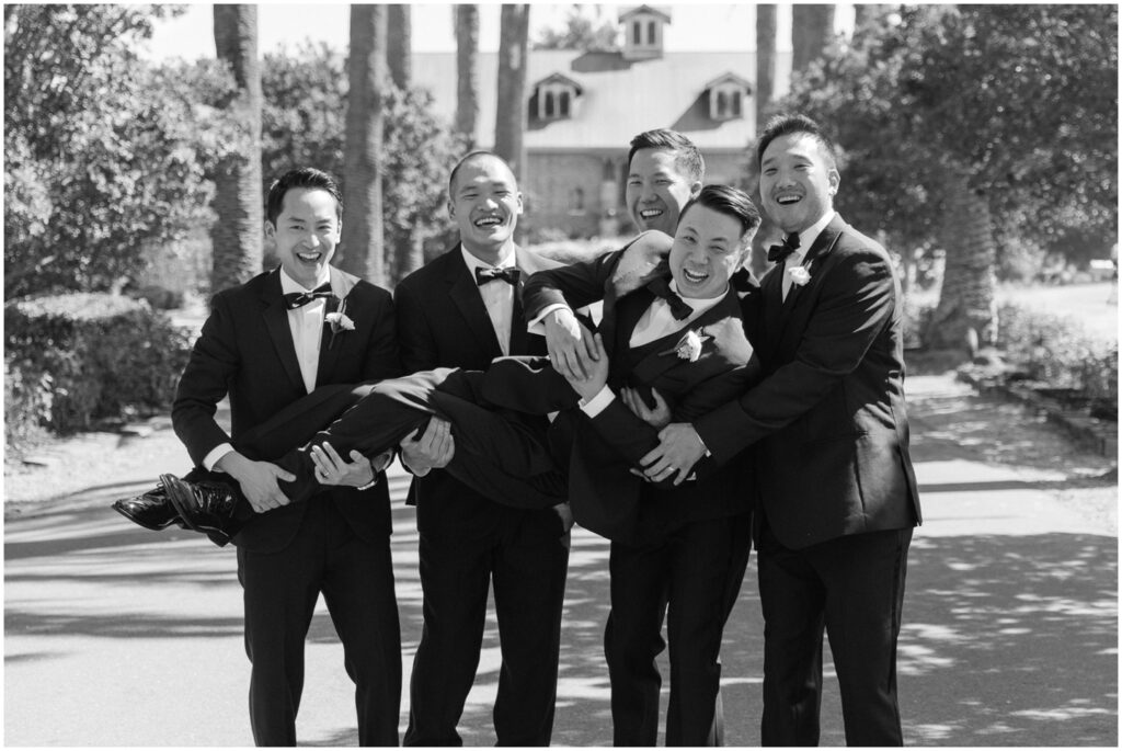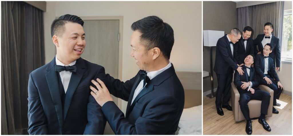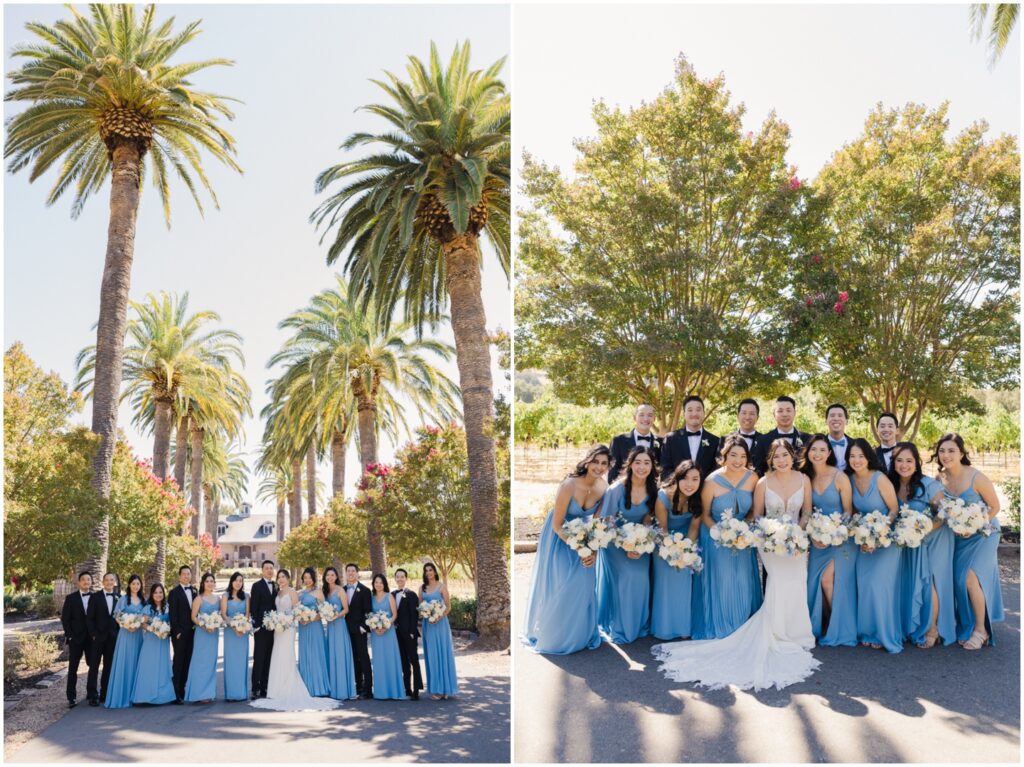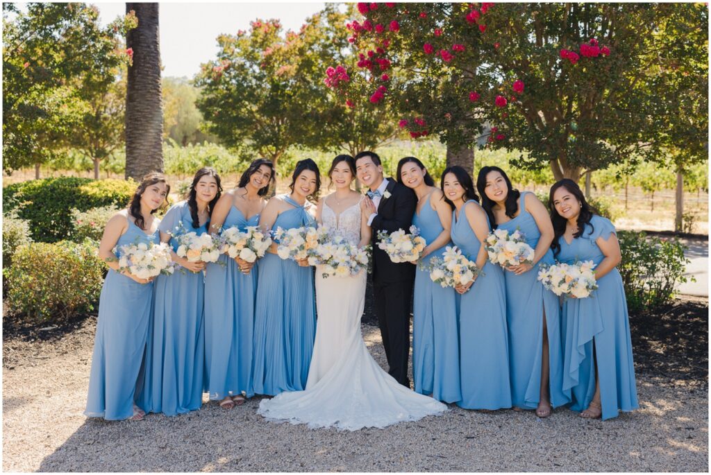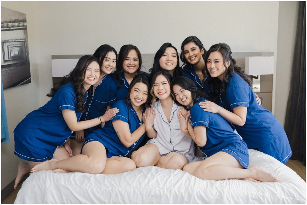 We began the day at a nearby hotel where both M and K got ready. M was surrounded by her 8 bridesmaids and her “man-of-honor” — her brother — making for such a fun and supportive atmosphere. Before heading to the venue, M chose to do two special first looks at the hotel: one with her bridesmaids and another with her immediate family. The reactions were priceless, and it was clear just how loved and radiant she was as a bride.