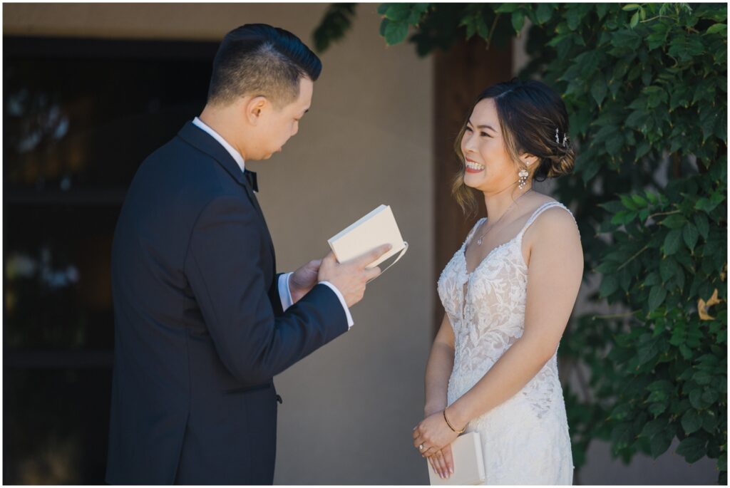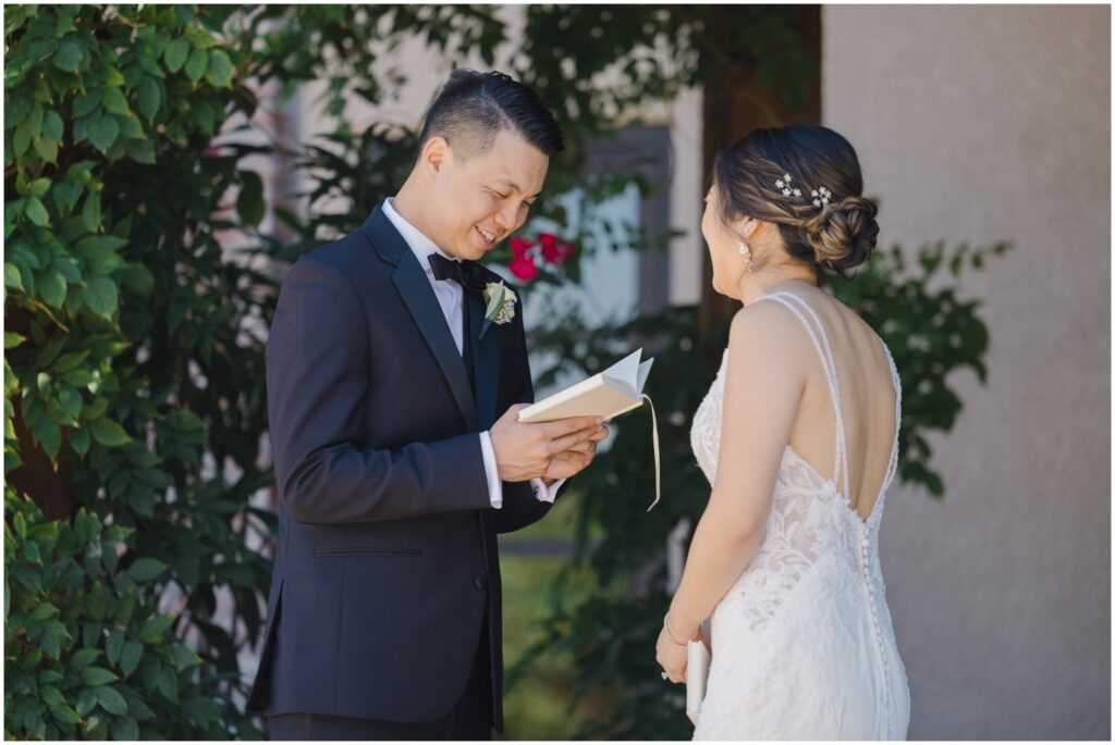 Once we arrived at the Palm Event Center, M + K shared their emotional first look. K didn’t expect to cry, but as they exchanged their personal vows, the tears came — a truly beautiful and touching moment.