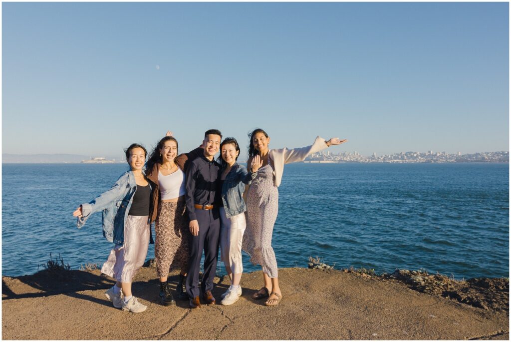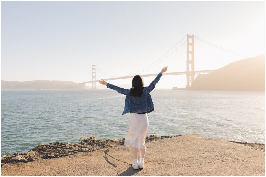 E thought she was simply spending the day with her girlfriends—getting their nails done, dressing up, and taking photos together. Once we arrived at the beautiful Cavallo Point, we had E turn toward the Golden Gate Bridge for what she thought was just another photo… and that’s when A appeared!