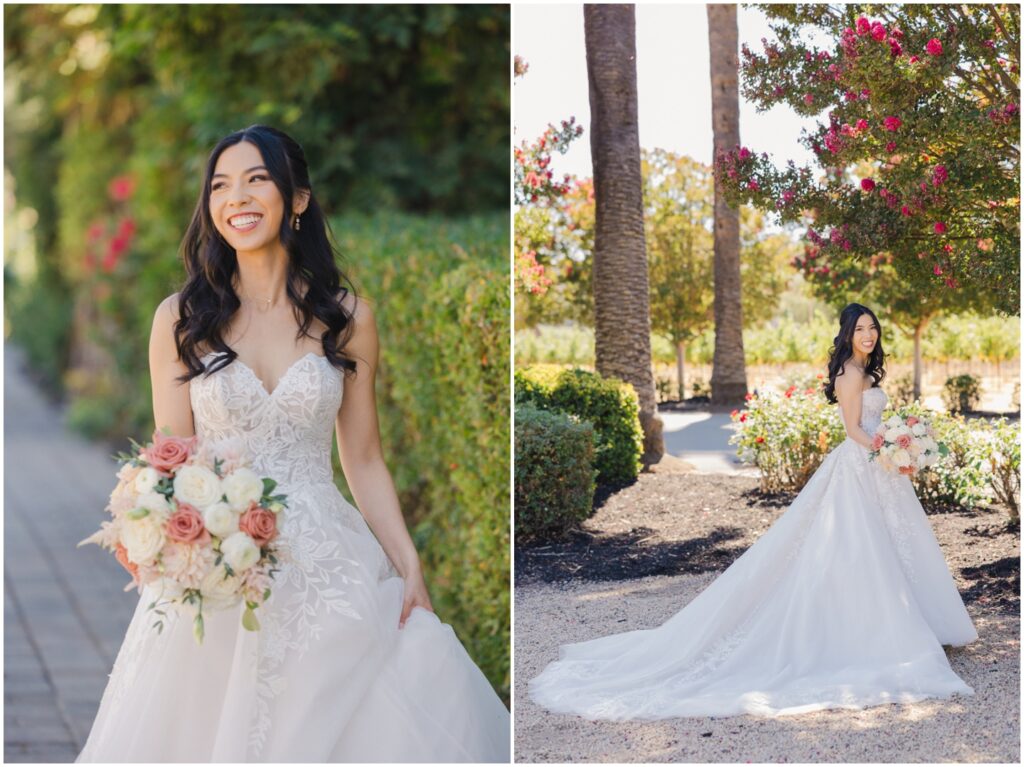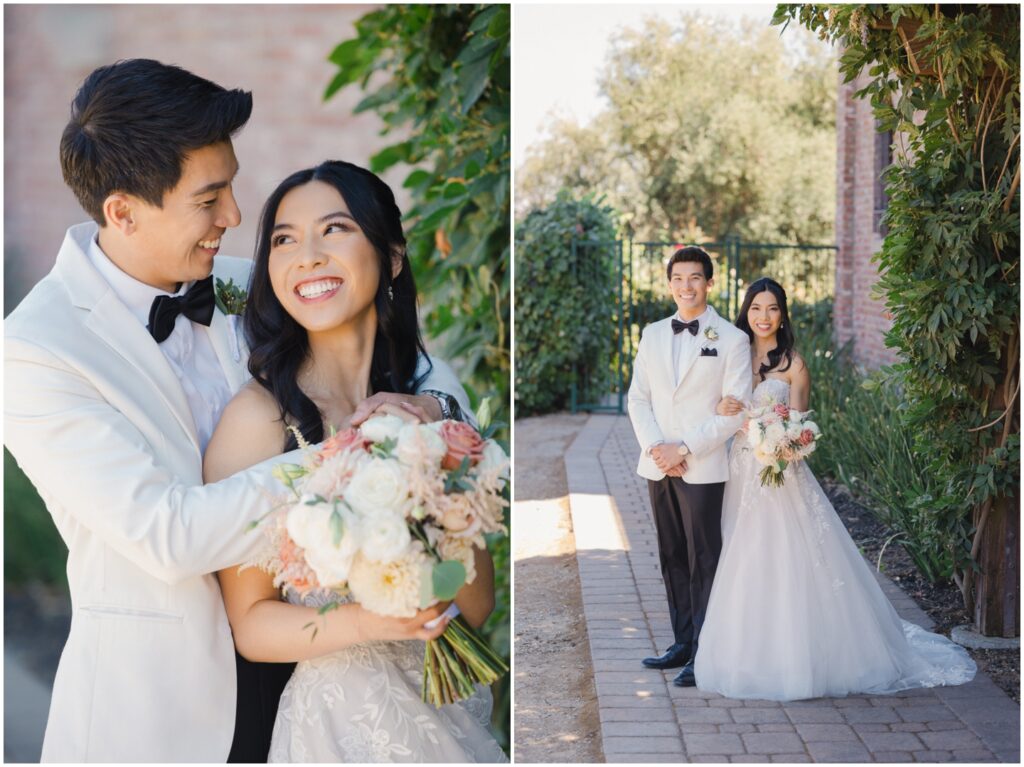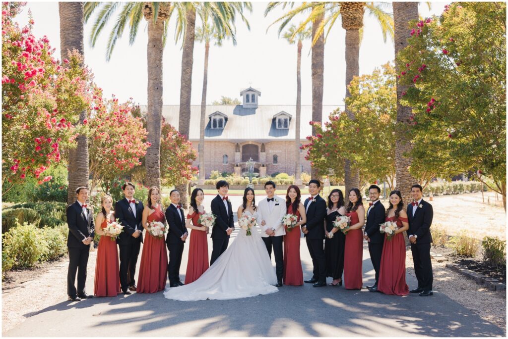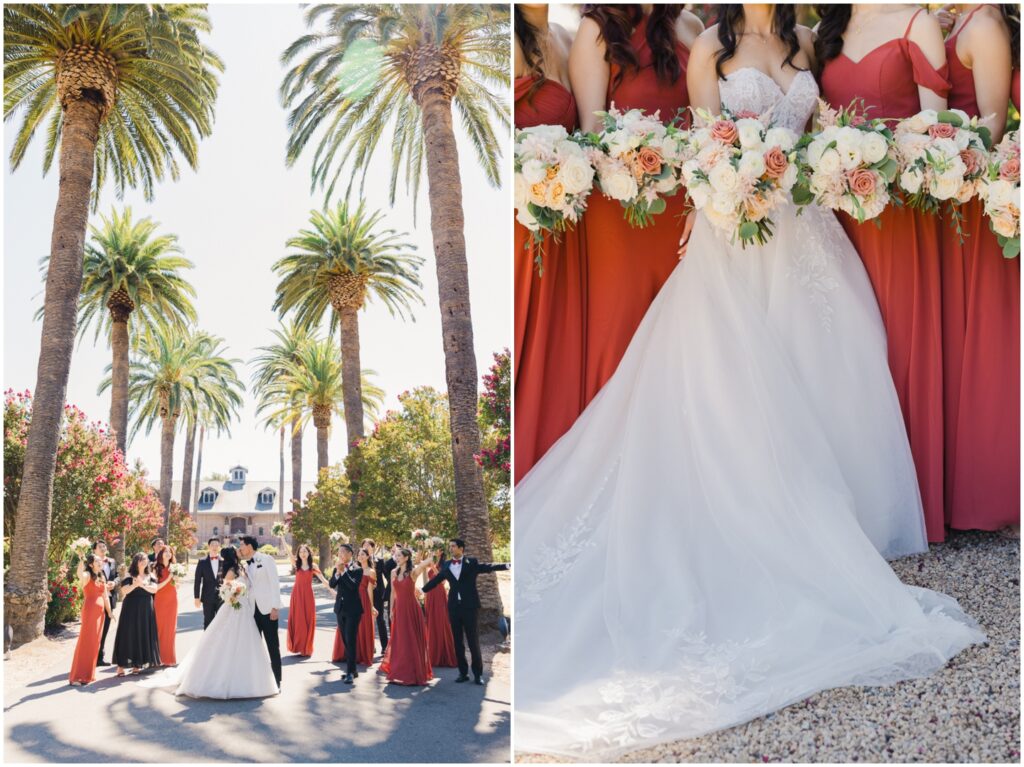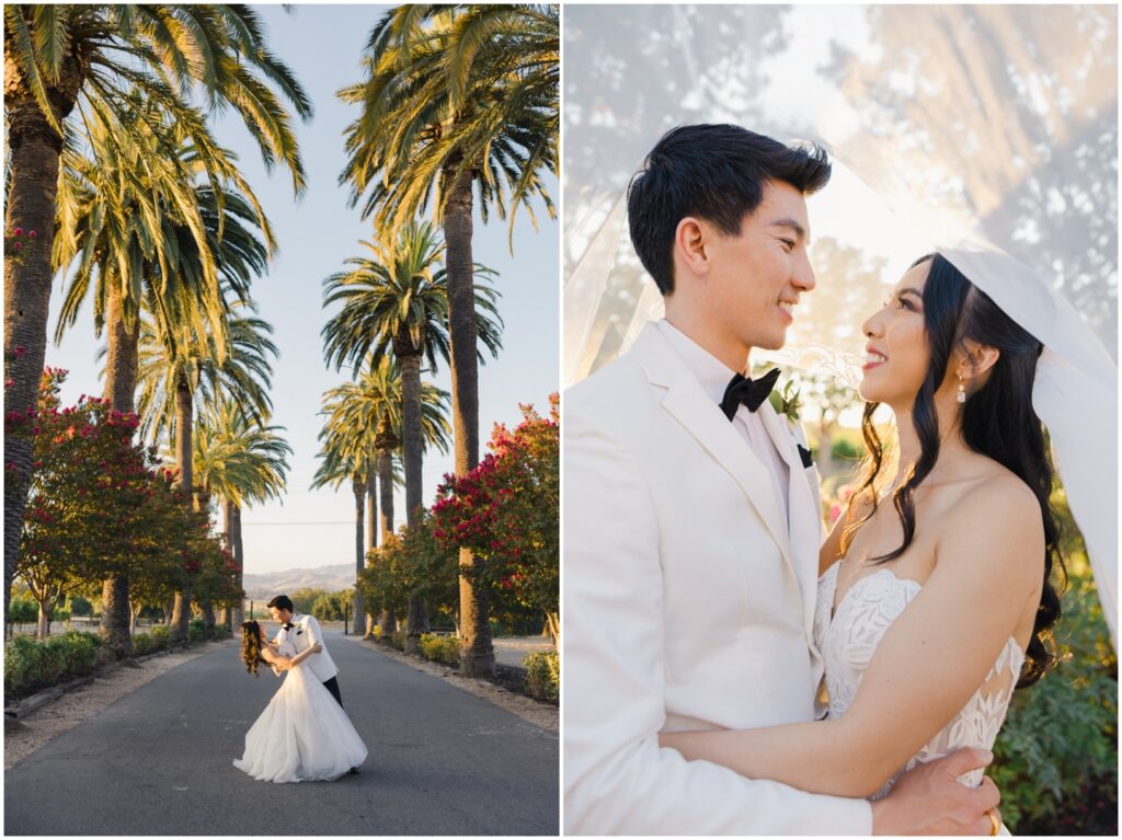 Earlier this year, I had the pleasure of photographing M+H’s engagement session at San Francisco City Hall. From the moment I met them, I knew their wedding was going to be something truly special — and it absolutely was! At the end of summer, M+H tied the knot at the beautiful Palm Event Center in Pleasanton, CA. What makes this location so amazing is the variety of stunning backdrops available — from vineyards to elegant interiors — and we made sure to explore as many as possible for their portraits.