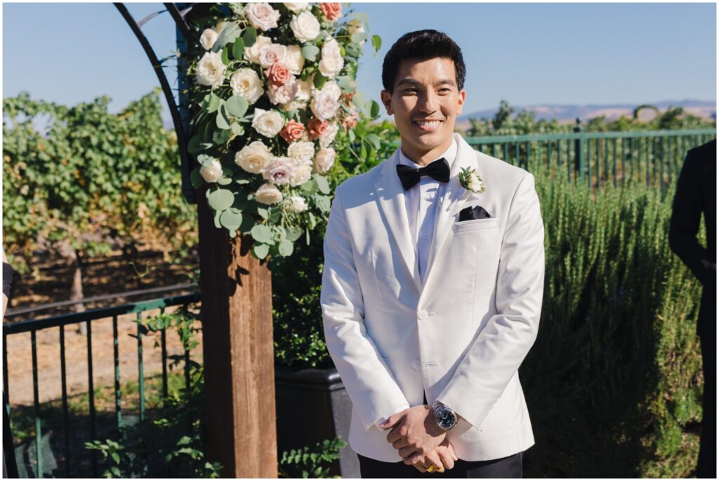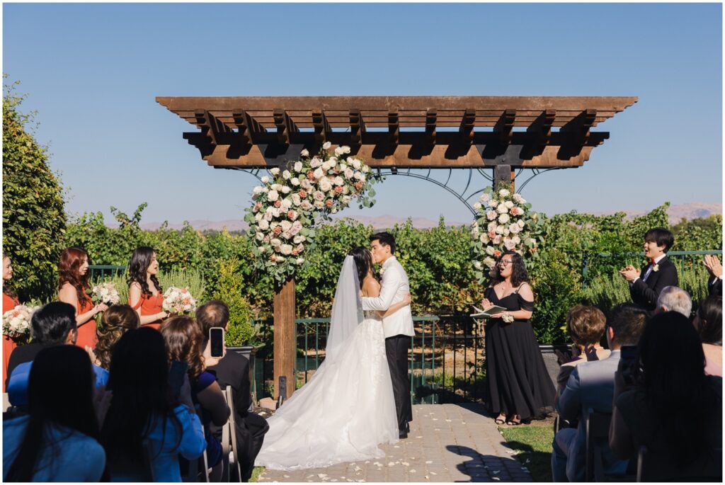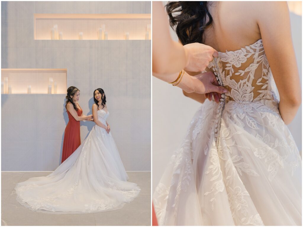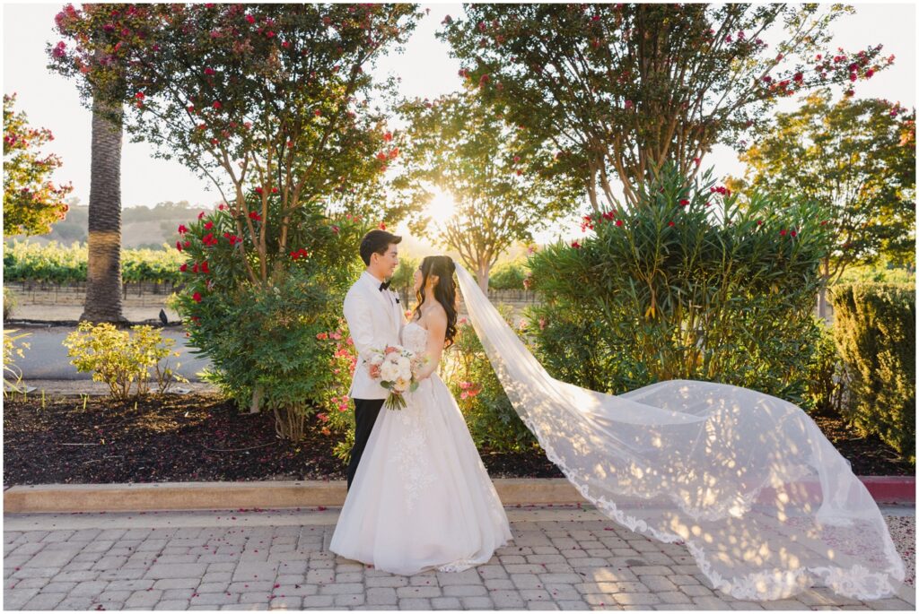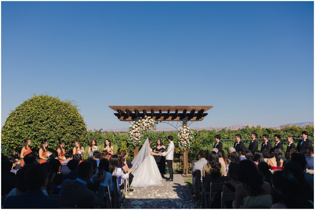 Earlier this year, I had the pleasure of photographing M+H’s engagement session at San Francisco City Hall. From the moment I met them, I knew their wedding was going to be something truly special — and it absolutely was! At the end of summer, M+H tied the knot at the beautiful Palm Event Center in Pleasanton, CA. What makes this location so amazing is the variety of stunning backdrops available — from vineyards to elegant interiors — and we made sure to explore as many as possible for their portraits.