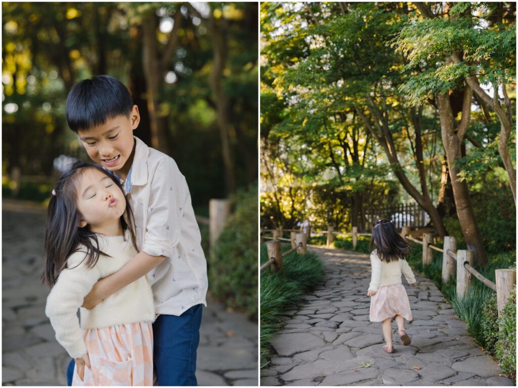 We spent the evening exploring the garden, running through pathways, climbing rocks, and letting the kids just be themselves — which, of course, made for the best candid moments. These kinds of sessions are my favorite: full of laughter, energy, and genuine connection.