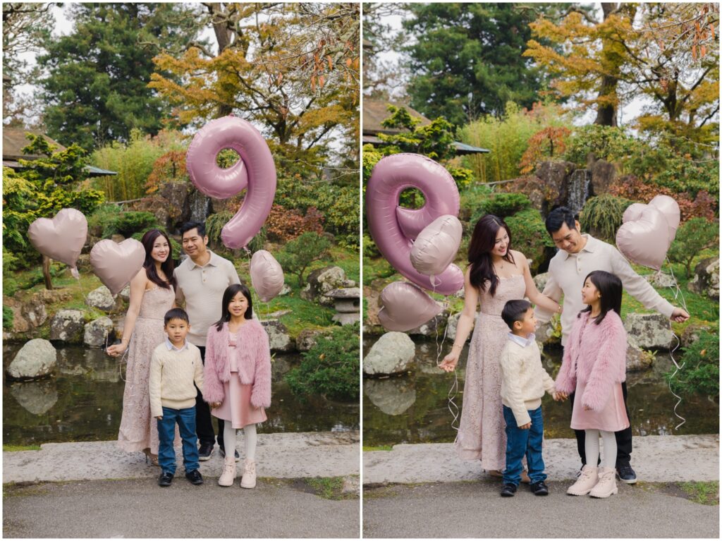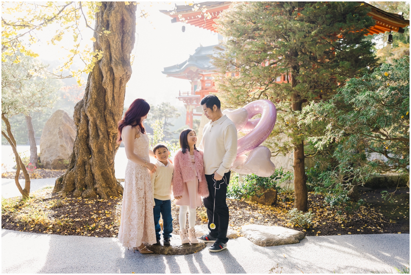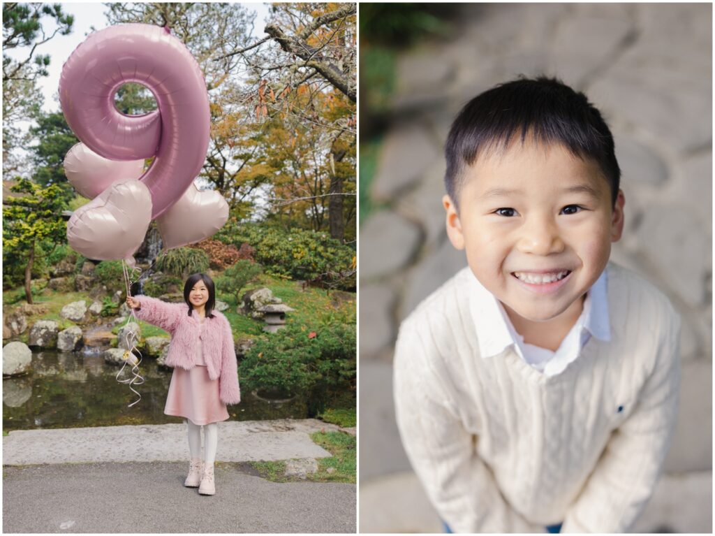 It’s Little K’s 9th birthday, and what better way to celebrate her special day than with a birthday photoshoot? We spent the morning at the beautiful Japanese Tea Garden in Golden Gate Park, where the family arrived in the sweetest pink and cream outfits. Their pastel pink balloons added a dreamy touch of whimsy to every image! I had such a wonderful time guiding them through my favorite photo spots, capturing all the different combinations of this lovely family. Even K’s little brother got in on the fun—running across pathways, hopping over stepping stones, and bringing so much energy to the session.